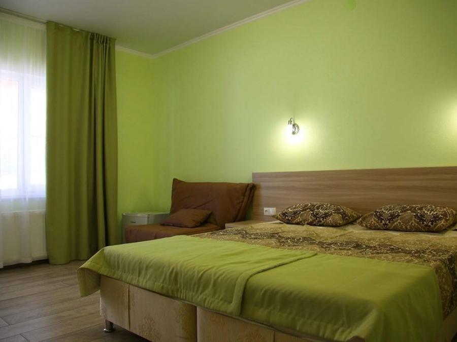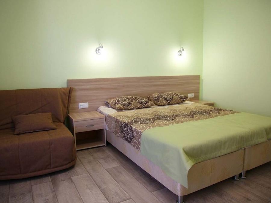 3-местные номера 1 категории "улучшенный". Расположены в домиках, рассчитанных на два номера, у каждого номера отдельный вход. Номера двухкомнатные: в первой комнате двуспальная кровать, во второй - диван. Также есть: санузел, ТВ, холодильник, сплит-система, фен, чайник, терраса.