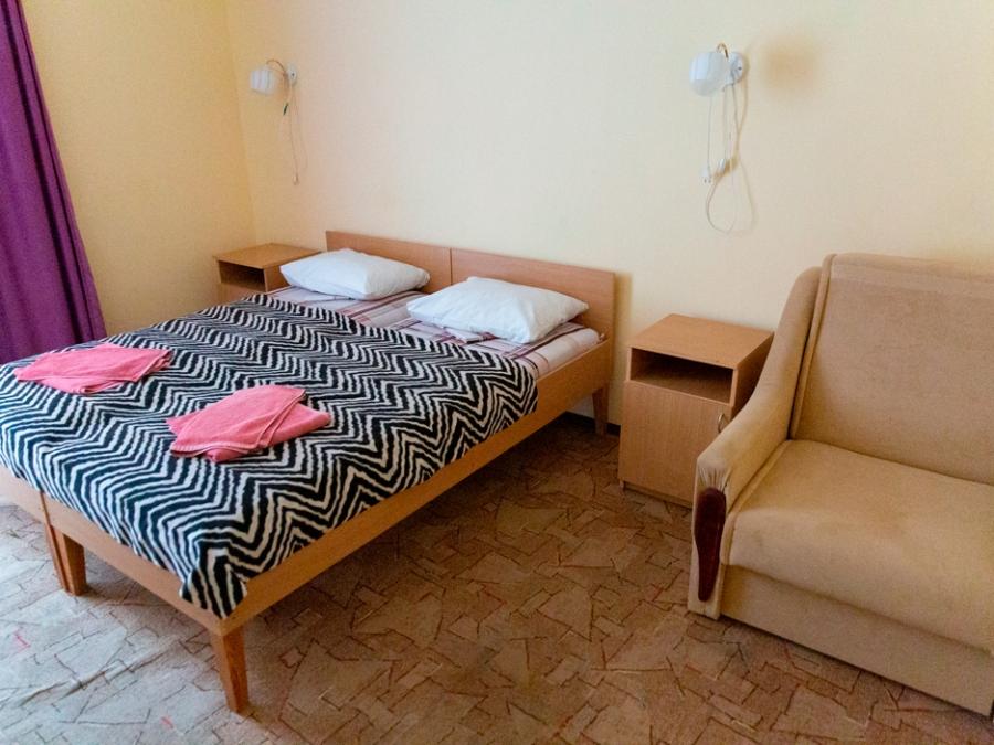 Размещение в четырехэтажном корпусе в 2-местных номерах стандарт. Возможно размещение 2-х человек на основных местах и одном дополнительном (кресло-кровать или раскладушка). Во всех номерах: санузел, холодильник, ТВ, кондиционер и балкон.