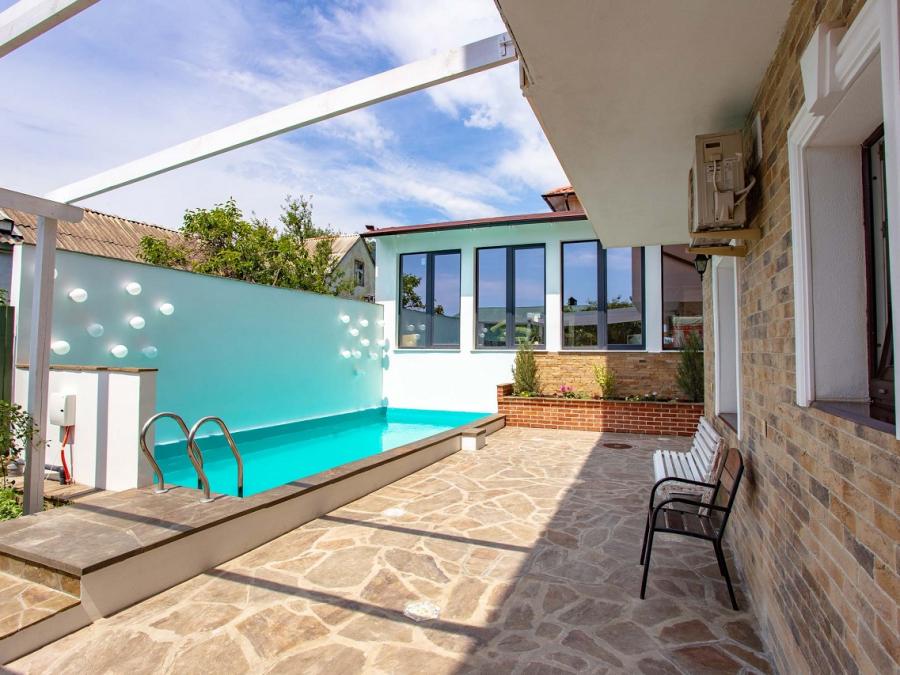 Инфраструктура. В гостевом доме есть кухня для самостоятельного приготовления пищи, бассейн с подогревом, зоны отдыха, мангал, Wi-Fi.