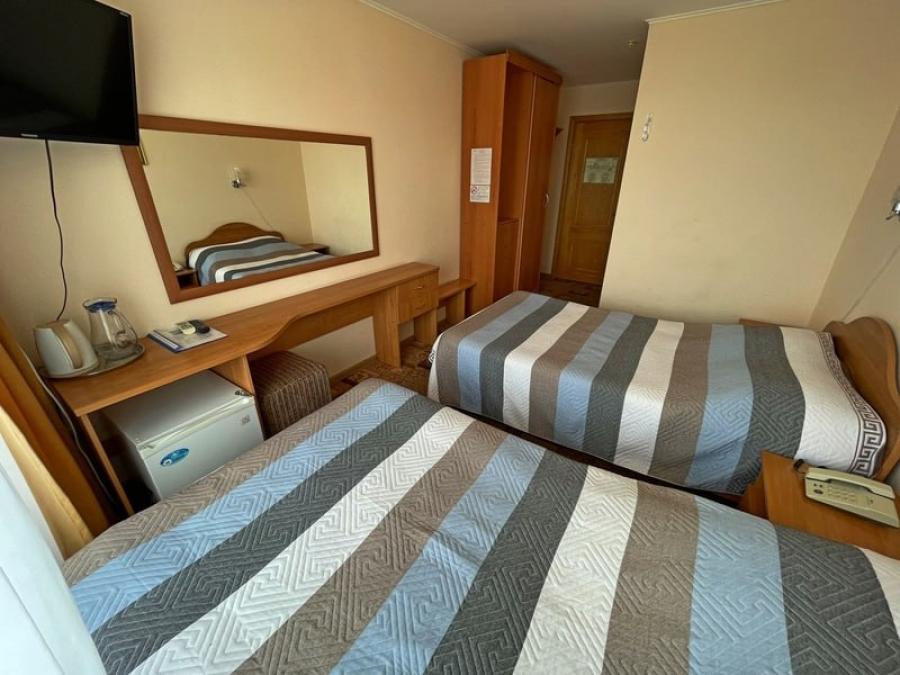 1-, 2-, 3-местные номера с санузлом, ТВ, холодильником, кондиционером, Wi-Fi. В 2-местных номерах две односпальные кровати. В 3-меестном номере две комнаты: в одной – диван, в другой – две односпальные кровати.