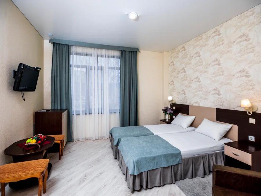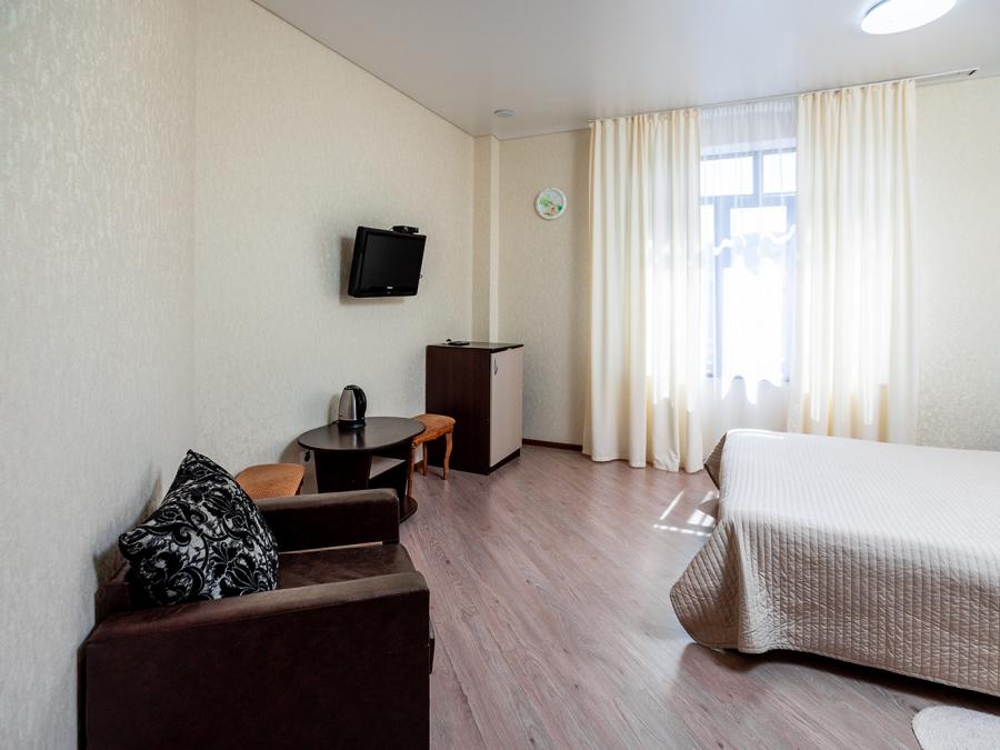 2-, 3-местные номера стандарт с ТВ, холодильником, санузлом, сплит-системой, чайником, посудой, Wi-Fi. В 2-местных номерах две односпальные кровати, в 3-местных двуспальная кровать и диван. В 3-местных номерах можно установить дополнительное место – евро-раскладушку.