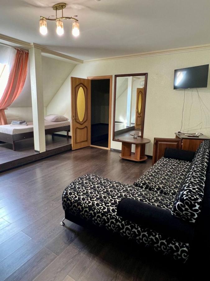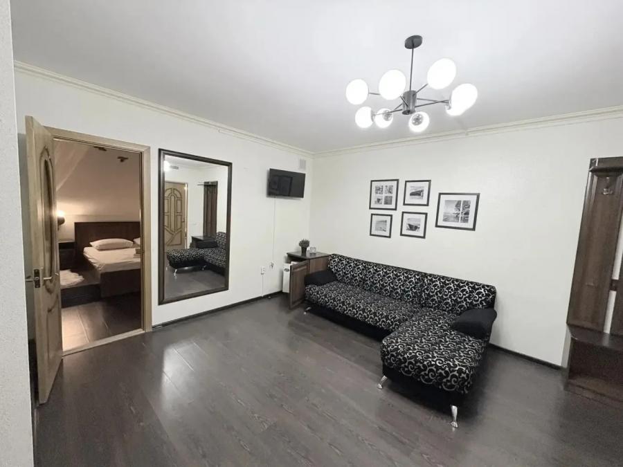 5-местный семейный люкс. Номер находится на четвертом этаже и состоит из двух комнат, в одной – двуспальная кровать (комната без окна), в другой двуспальный диван и одноместная кровать. Также в номере: санузел, ТВ, холодильник, сплит-система, Wi-Fi.