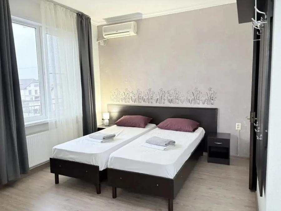 2-, 3-, 4-местные номера стандарт. В номере: мебель, санузел, ТВ, холодильник, сплит-система, Wi-Fi, общий балкон. В 2-, 3-местных номерах две односпальные кровати, которые можно соединить в одну и диван. В 4-местных номерах две кровати и двухъярусная кровать.
