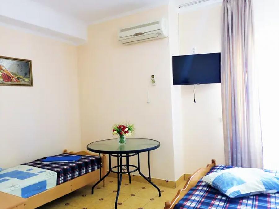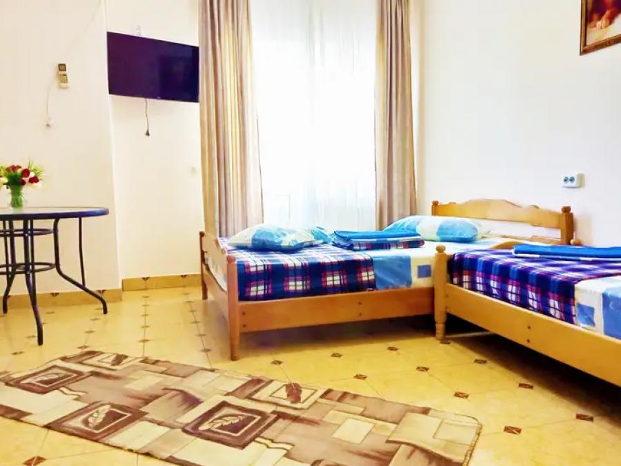 Размещение в 2-, 3-, 4-, 5-местных номерах стандарт с удобствами, ТВ, холодильником, сплит-системой, сейфом, феном, Wi-Fi, балконом. В 2-местных номерах двуспальная кровать.